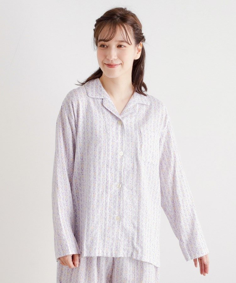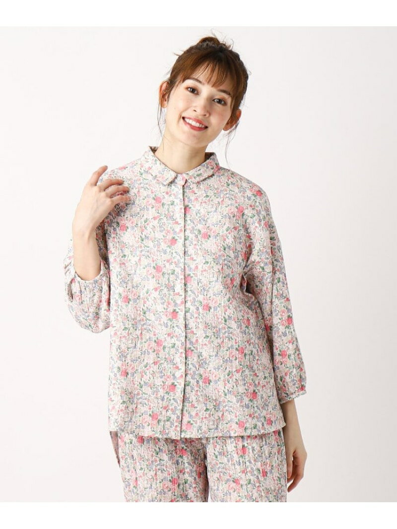 ロウェナ柄 ガーゼシャツ LAURA ASHLEY HOME ローラ アシュレイ インナー・ルームウェア パジャマ ピンク ブルー【送料無料】[Rakuten Fashion]