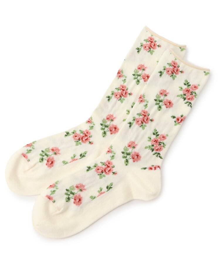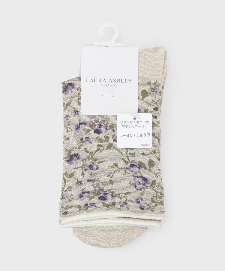 LAURA ASHLEY HOME タルラ柄 レーヨンシルク混 クルーソックス ローラ アシュレイ 靴下・レッグウェア 靴下 ホワイト ブラウン ピンク