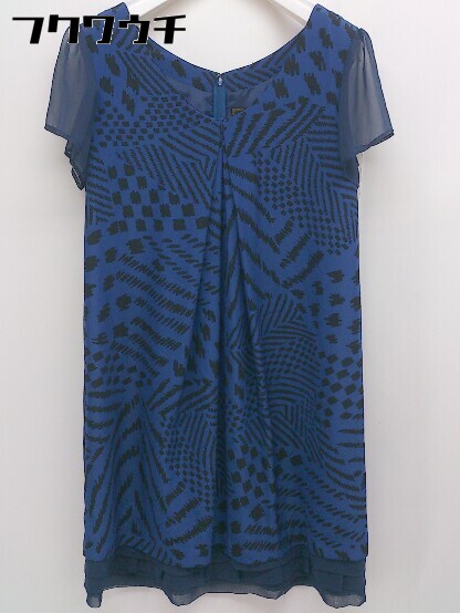 ◇ vestiaire ヴェスティエール 総柄 半袖 膝丈 ワンピース ブルー レディース 【中古】