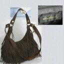 【中古】本物美品VIVAYOUビバユー女性用沢山のフリンジの付いた焦げ茶色スエード持ち手が2本付いたショルダーバッグお洒落です ○C11-380-2