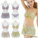 閉店セール!水着 レディース フォークロアボーダー×レース ミニパレオ ビキニ セット VIVAYOU/ビバユー