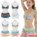 閉店セール!水着 レディース エスニックボーダー4点セット VIVAYOU/ビバユー