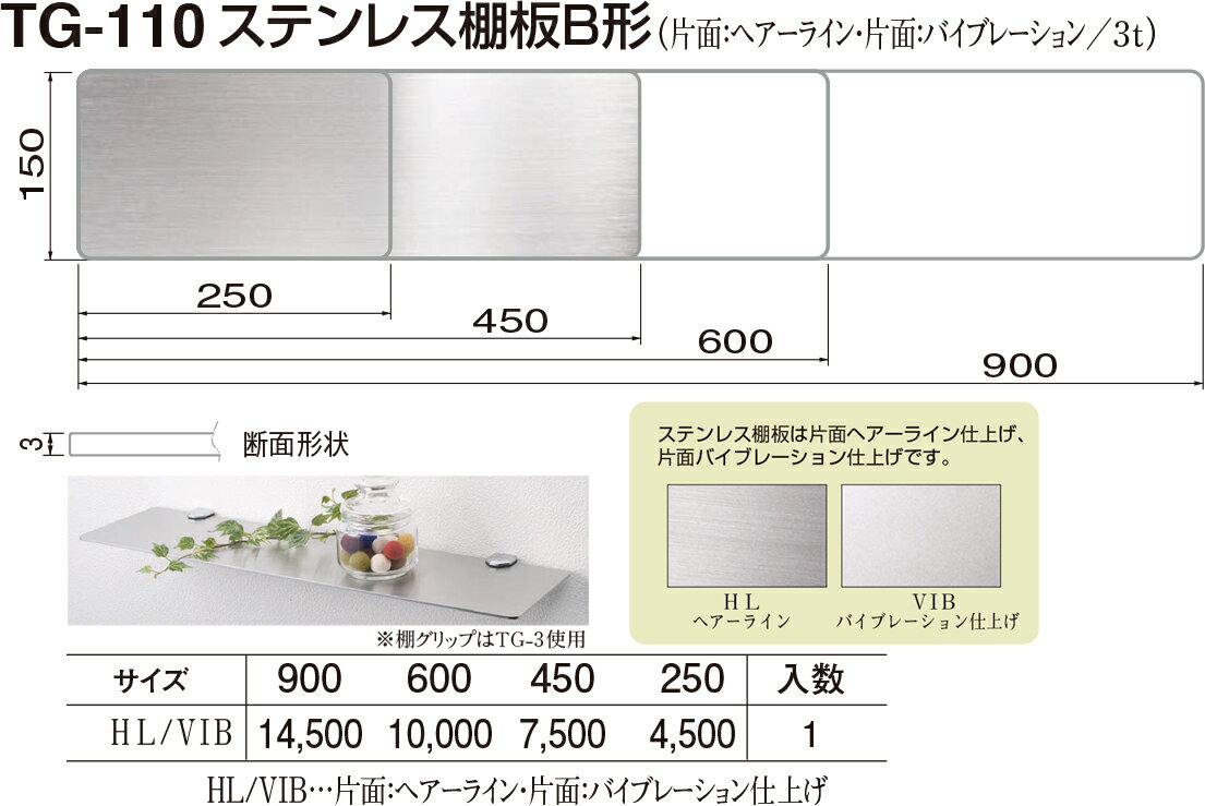 【シロクマ】ステンレス棚板B形 TG-110 900mm HL/VIB(数量:1)