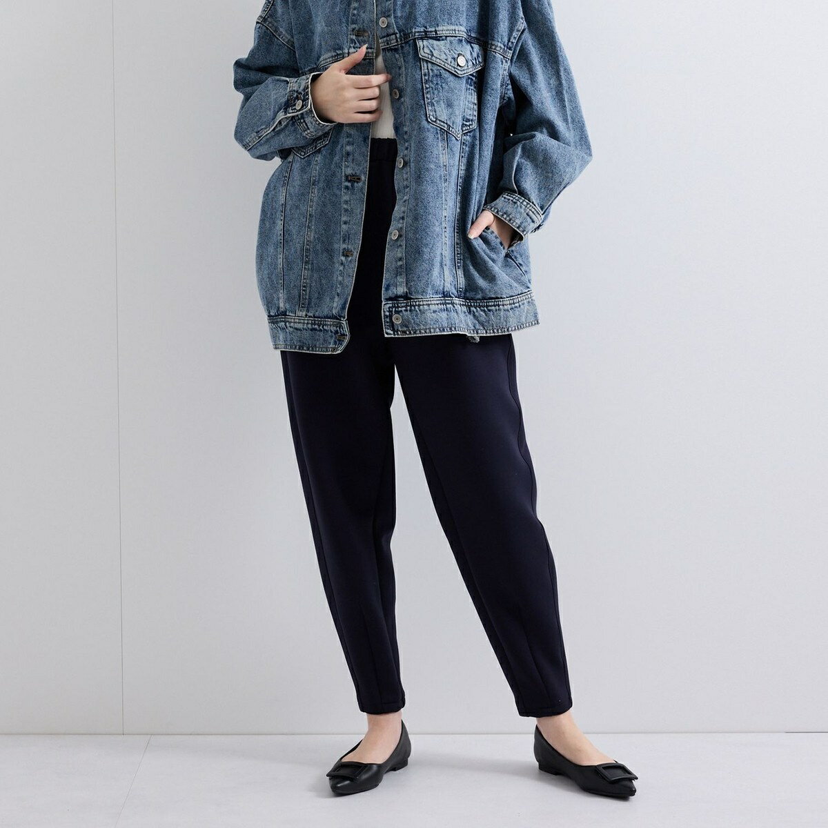 [型番:2310-50089]ー オンオフ兼用、おとなのためのバレルレッグスウェットパンツー●POINT太くなりすぎないように分量感にこだわり、腰から膝上までゆとりを持たせて、ふくらはぎから裾にかけて切替を入れてテーパードにした丸みを帯びたシルエットです。程よい肉感とツヤ感があり、会社にも履いていけるイメージでデザインされたジャージー素材のイージーパンツです。テキスタイルのスラックスのきれい見えと裏毛のスウェットパンツの楽ちん・イージー性を両立するオン・オフタイムを選ばない1本です。 ●FABRIC史上最高の柔らかさを目指して糸の選定からこだわりぬいたファブリックを使用しています。程よい肉感で軽さのある、フォルム表現が演出できる生地のスポンディッシュなダンボールジャージー素材です。レーヨンのツヤ感としなやかさ、キックバックの良いストレッチ感が特長です。●COORDINATEシャツやブラウスなどにあわせてオンタイムフェイスに、グラフィックTシャツやカットソーにあわせてカジュアルルックに。ペプラムデザインなどのヘム変化のあるデザイントップスにあわせていただいても、バランスのとりやすいシルエットです。同素材のシリーズにスポンディッシュオーバーサイズプルオーバー(2307-50018)がございます。----------------------------------透け感:なし厚さ: やや厚い伸縮性:あり裏地: なしポケット: あり--------------------------------------------------------------------洗濯方法家庭洗濯:液温は40℃を限度とし、手洗いが出来る。自然乾燥:日蔭の吊り干しがよい。アイロン:底面温度110℃を限度としてアイロン仕上げができる。ドライクリーニング:石油系溶剤による弱いドライクリーニングができる。----------------------------------■モデル身長 171cm 着用サイズ M※画像の商品はサンプルとなりますので実際の商品と仕様、加工、サイズが若干異なる場合がございます。※お客様のモニター環境により実際のお色と多少異なる場合がございます。※撮影状況や光の当たり具合により、色合いが異■カラー:ブラック、ネイビー、ブラウンM:パンツ丈96cm ウエスト69cm ヒップ101cm 股上30/34.5cm 股下66cm わたり幅33cm 裾幅12cm※( )で表記されている数字はヌードサイズです。ヌードサイズとは衣服を身につけない身体のサイズです。お客様ご自身の身体サイズと比較してお選びください。 ■素材: ポリエステル76% レーヨン18% ポリウレタン6%【別布】綿100% ■お手入: 手洗い、漂白不可、タンブル乾燥不可、自然乾燥、アイロン仕上げ可、ドライ可、ウエットクリーニング可 >>商品のお取り扱い方法 ■原産国: -スポンディッシュバレルレッグパンツ≪手洗い可能≫/ビッキー(VICKY)ブラックネイビーブラウン画面上と実物では、多少色具合が異なって見える場合がございます。