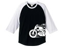 スピードアディクト サイドプリント Raglan 3/4 Sleeves T-shirt(SPEED ADDICTサイドプリントラグラン3/4スリーブTシャツ)BLACK × WHITE 黒白七分袖長袖ロンtee英車英国車triumphbsanortonducatiホンダカワサキヤマハスズキメグロ