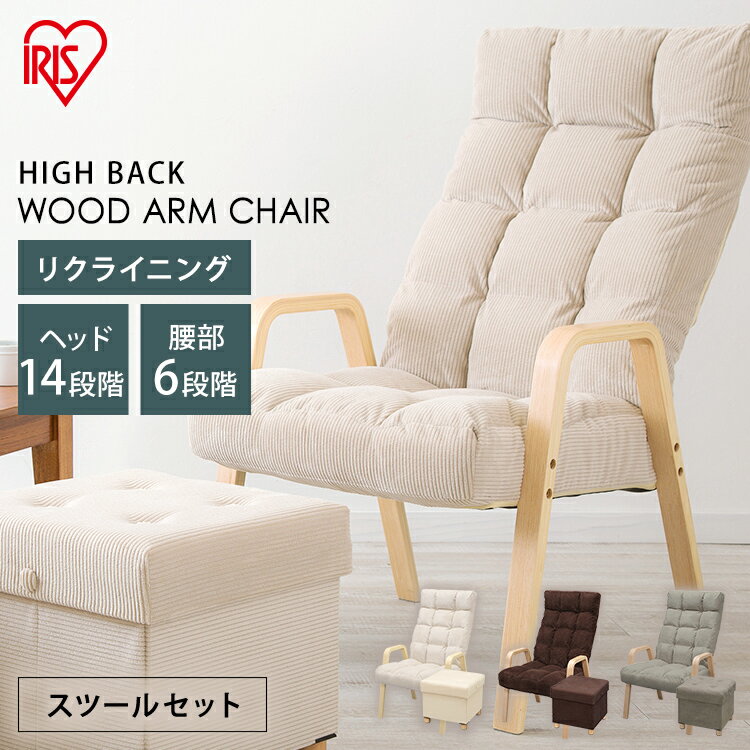 チェア おしゃれ 高座椅子 シンプル 【2点セット】イス 椅子 収納スツール ウッドアームチェア Lサイズ WAC-Lリクライニング チェア 在宅勤務 在宅ワーク テレワーク 自宅勤務 1人掛け ダイニングチェア イス 椅子 和室 アイリスオーヤマ おしゃれ【P2】