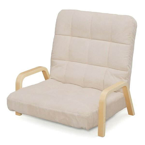 あぐらもかけるゆったりタイプ。立ち上がりやすい木のアーム付きのチェアです。コンパクトに折りたためます。ワイド幅なので、あぐらをかくなどゆったりとご使用いただけます。こたつやローテーブルと合わせてのご使用もおすすめです。和室、洋室問わず様々なインテリアにマッチするデザインです。2台連結して二人掛けソファとしても使用できます。お客様組立品。カラー:コーデュロイ/ベージュ商品サイズ(約):幅72×奥行63〜82×高さ約63〜68cm折りたたみサイズ(約):幅72×奥行63×高さ30cm座面の高さ:約18cm座面の厚み:約11cm重量:約8.6kg材質:構成部材/スチール、積層合板(ラッカー塗装)、張り材/ポリエステル100%、クッション材/ウレタンフォーム生産国:中国