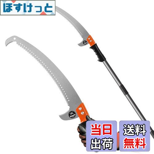 【鋭い刃】:この枝切り用のノコギリは、三面が研ぎ澄まされた鋭いエッジと両面のバーブデザインを持っており、耐久性のあるMn鋼材料で作られています。切断能力が強く、軽量で耐久性があり、錆びにくいです。精密に研磨された鋭い歯は、速く、クリーンで、スムーズな切断を保証するために複数の切断角度を特徴としています。これにより、木を効果的にトリミングできます。柔らかいハンドルに包まれており、握り心地が良く、簡単に交換できます。 【安全保証と耐久性のある素材】:ポールは高品質のスチールで作られ、パウダーコートが施されています。また、ノコギリの刃は錆びにくいMn鋼で作られています。滑り止めハンドルグリップは快適で安全です。このポールソーは、梯子に登ることなく、高い位置の枝や葉を剪定するのに十分な強度があります。ハンドルの追加補強ネジにより、ソーヘッドがポールに十分に締まり、落下による危険がありません。 【調節可能な長さ&簡単な組み立て】:ポールソーは最大で2.3m、3m、または4.3mの長さになり、低いトリミングや整理のために手持ちでも使用できます。