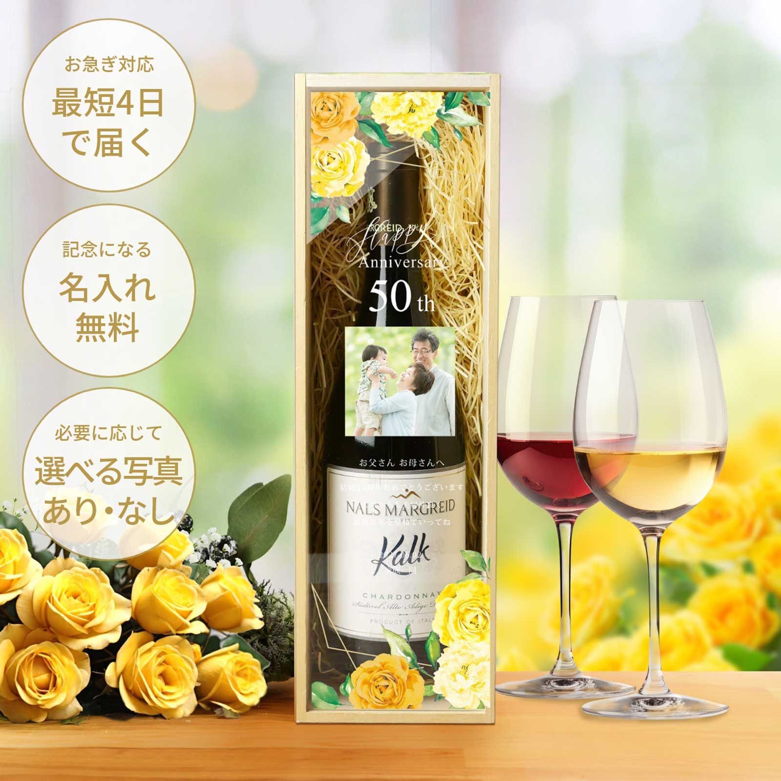 金婚式 ワイン 写真 結婚50周年 結婚記念日 お祝い 贈り物 ギフト 記念品 メッセージ入り 長寿祝い 敬老の日 両親プレゼント 名入れ無料 メッセージ プレゼント お酒 / 金婚式・結婚記念日50周年の贈り物「金婚式ワインギフト」