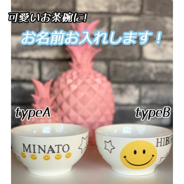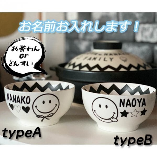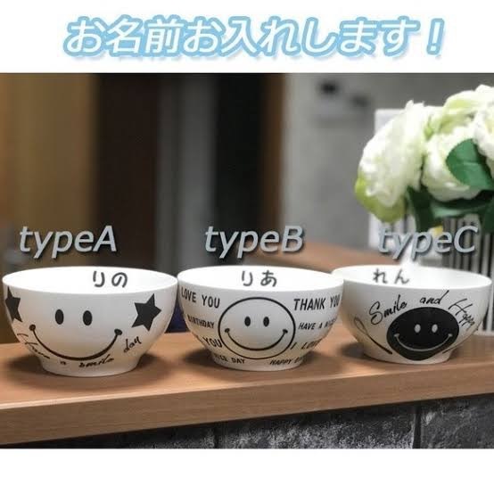 名入れ可能ご飯茶碗 モノクロ スマイル柄 にこちゃん 食器 誕生日プレゼント 北欧 引っ越し祝い 結婚祝い 出産祝い セット 贈り物 お祝い