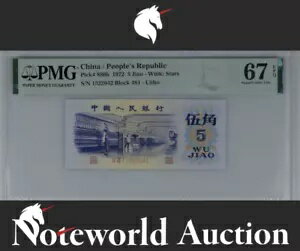 中国 5 角 1972 P 880b Litho W/ Star Watermark UNC PMG 67 EPQ