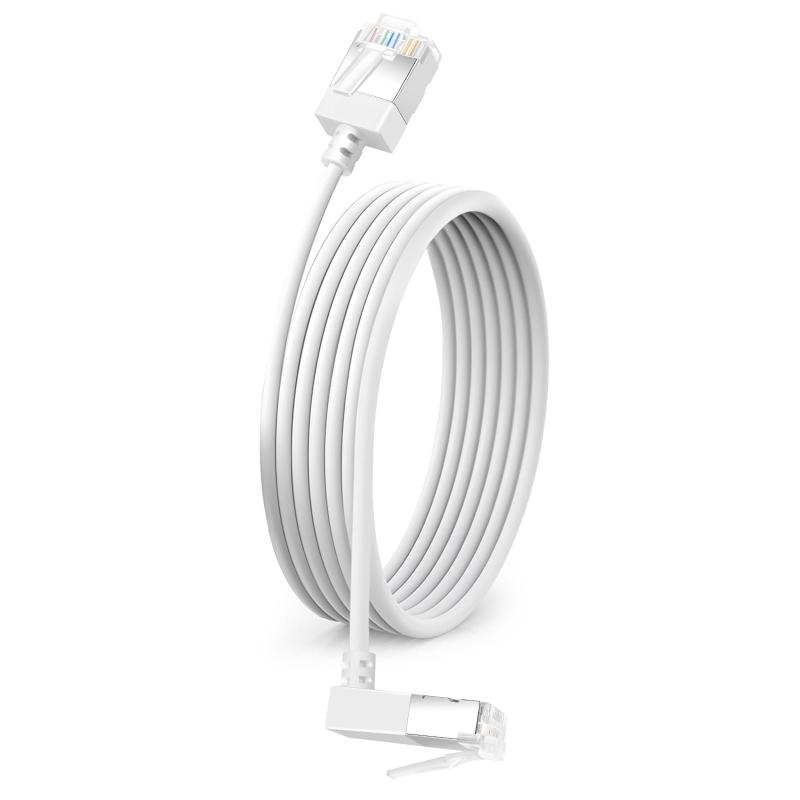 Dutevolns 超薄型 Cat6 イーサネットケーブル 90度下向きアングル 1m、柔軟スリム RJ45 Cat6a LANケーブル 、高速10Gbps 550Mhzケーブル、対応 PC、ルーター、PS4、PS5用(ブラック)【Cat6イーサネットケーブル90°下向き】Dutevolns Cat6a 90°下向きアングルケーブルは、コンパクトで狭いスペースでの使用に適しています。ノートパソコンにぴったりフィットし、家具の後ろのネットワーク壁パネルに接続して、ケーブルの曲がりを効果的に防ぎ、寿命を延ばします。高速ネットワーク接続:Dutevolns Cat 6Aイーサネットケーブル10フィートは、最大10Gbpsのデータ転送速度と550MHzの帯域幅をサポートし、32AWG純銅イーサネットケーブルで安定した伝送信号を提供します。 サーバーアプリケーション、クラウドストレージ、ビデオチャット、オンライン高解像度ビデオストリーミングなどに適しています。ネットワークのニーズに合わせてデータをすばやく送信できます。カテゴリ6aイーサネットパッチケーブルは、Cat6aネットワークケーブル、Cat6aケーブル、Cat6aイーサネットケーブル、またはCat 6aデータ/LANケーブルとも呼ばれます。 10ギガビットイーサネット(既存のファストイーサネットおよびギガビットイーサネットとの下位互換性)のネットワークを将来的に保護します。幅広い互換性:Cat6Aイーサネットケーブルは最大32AWGに達し、PC、コンピューターサーバー、プリンター、ルーター、スイッチ、ネットワークメディアプレーヤー、NAS、VoIP電話、PoEデバイスなどのLANネットワークコンポーネントにユニバーサル接続を提供します。「下向き」の意味:Cat6 下向きアングルイーサネットケーブルクリスタルヘッド透明榴散弾は上向きで、ケーブルは下ワードを向いています。