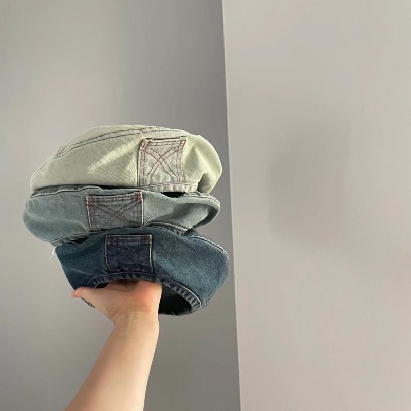 帽子 キッズ 子供 男の子 女の子 ジュニア 小学生 韓国風 デニム ベレー帽 画家帽 春夏秋 コットン 綿 通気性 紫外線対策 UVカット 日除け 丸い かわいい おしゃれ カジュアル 普段使い お出かけ ブルー 青