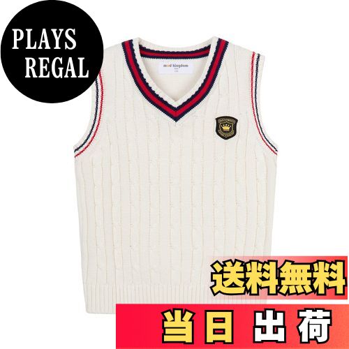 【送料無料】[LittleSpring] キッズ ニット ベスト Vネック スクールベスト 子供 男女兼用 ケーブル編み ワンポイント 通園通学 100-160 色:ホワイト、サイズ:140