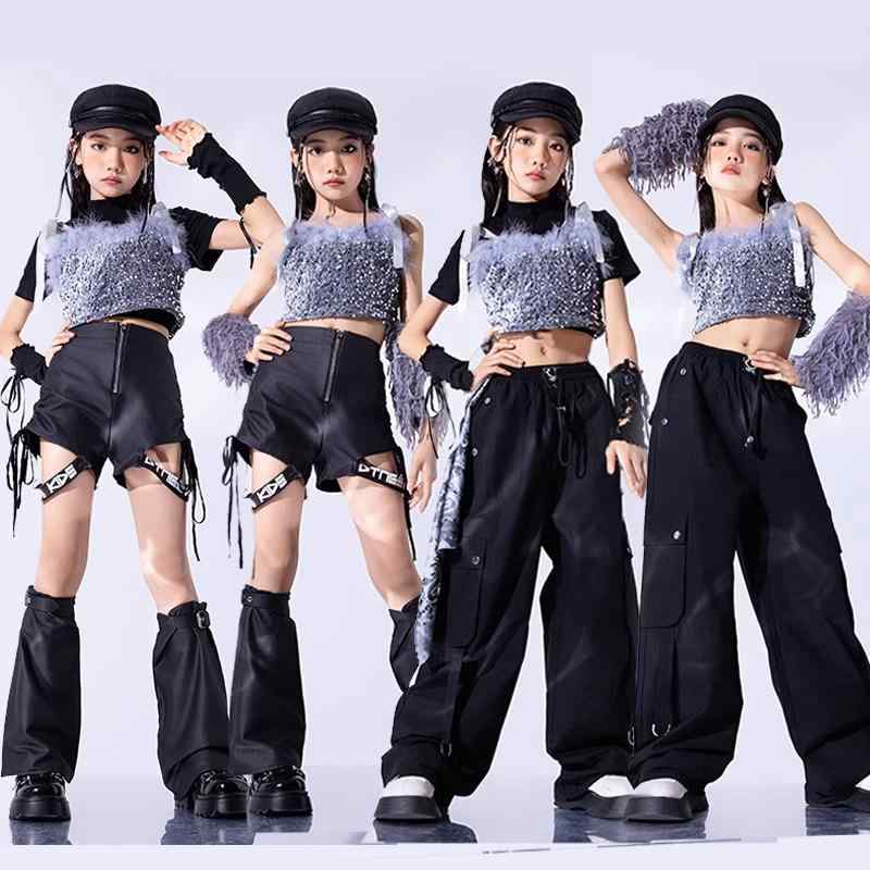 子供服 女の子 Tシャツ タンクトップ へそ出し パンツ コスチューム バンド ダンス ヒップホップ ストリート系 パフォーマンス 衣装 セットアップ クール かっこいい キッズ