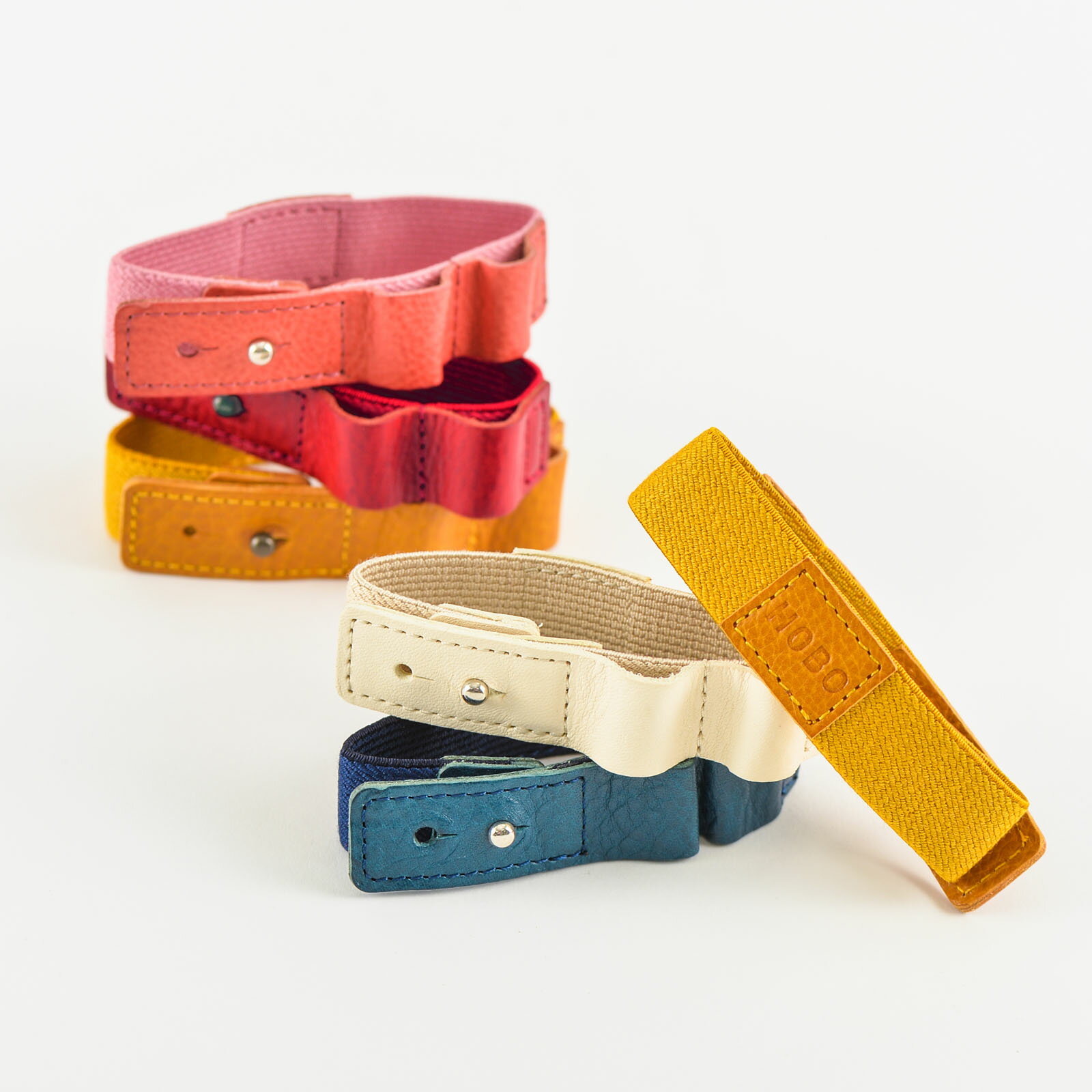 weeksがかばんの中などで 開かないようにとめておけるブックバンドです。 伸び縮みするゴム素材で、 バンドをとめる穴が2つ用意されているため、 手帳の厚みが変わったときも調整できます。 ペンさしがついていて、 手帳と一緒に2本のペンを持ち歩くことができます。 また、ほぼ日オリジナルのしるしとして 「HOBO」のマークもついています。 色は、「ヌメ」「ネイビー」「ローズ」 「レッド」「イエロー」「ホワイト」の 6色からお選びください。 (「ヌメ」とは、使ううちに濃くなり 革の色の経年変化をたのしめるカラーです) サイズ・仕様 サイズ 横20mm×長さ約230m 重さ11g 主な素材牛革、ゴム 知っておいてほしいこと ・着色された革製品は、顔料がなじむまで、色が落ちていくという特性があり、他のものとの密着や摩擦により色移りします。 衣服や持ち物への色移りにご注意ください。特に水に濡れた場合はお気をつけください。 ・ペンホルダーは軸径12ミリ程度のペンが抜き差ししやすいサイズです。 ゴム素材で伸縮性があるため、 軸系13ミリ程度のペンまで収納できますが、 ペンの形状や素材によっては、 多少、抜き差ししづらい場合があります。 よく一緒に購入されている商品ほぼ日 リベットバンド laccio660円ほぼ日手帳 保護カバー[スリム縦長] week500円ほぼ日手帳 ほぼ日の下敷き オリジナル [ A330円~類似商品はこちらバンド付きペンケース / おしゃれキャット[ス2,200円バンド付きペンケース / 101匹わんちゃん[2,200円ほぼ日の下敷き [ スリム縦長 ] week440円2025/10/18 更新