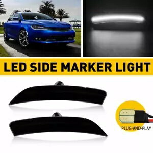2015-2017 200 クライスラー LED マーカーフロントサイドライトスモークホワイトレンズ 2X ランプ For 2015-2017 200 Chrysler LED Marker Front Side Lights Smoke White Lens 2X Lamp