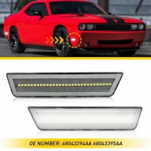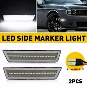 2X ホワイトレンズフロントサイドバンパーマーカーライトキット 2008 2014 ダッジ チャレンジャー用 2X White Lens Front Side Bumper Marker Lights Kit For 2008 2014 Dodge Challenger