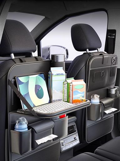 自動車 【大容量&多収納ポケット】車内の整理整頓に最適な広い収納スペースを提供します。大小様々な収納ポケットがあり、ボトルホルダー、タブレットホルダー、雑誌ポケット、ティッシュケースなど、必要なアイテムをしっかり収納できます。家族旅行や長距離ドライブで便利に活用でき、すぐに必要な物を取り出せます。 【折りたたみテーブル付】頑丈で安定感のある折りたたみ式テーブルが付属しており、食事やドリンクを置いたり、お子様の勉強やお絵描き、大人のパソコン作業にも利用可能です。使用しないときは簡単に折りたたみ、車内のスペースを有効に活用できます。 【高品質のレザー素材】高級感のあるPUレザーを使用しており、耐久性にも優れています。しっかりとした縫製で長期間使用しても形崩れしにくく、美しい外観を保ちながら、後部座席のインテリアにもピッタリです。 【防水・防汚加工】飲み物や食べ物をこぼしても簡単に拭き取れる防水加工が施されています。汚れに強く、日々のメンテナンスも簡単です。また、長さが十分にあるため、お子様や足を組んだりする際にシートを汚れから守ります。