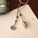 キーホルダー メンズ 男性用 シルバー925 銭袋 福袋 仏 ラッキーアイテム 如意 山鬼 瓢箪 車 ペンダント バッグチャーム(x2)