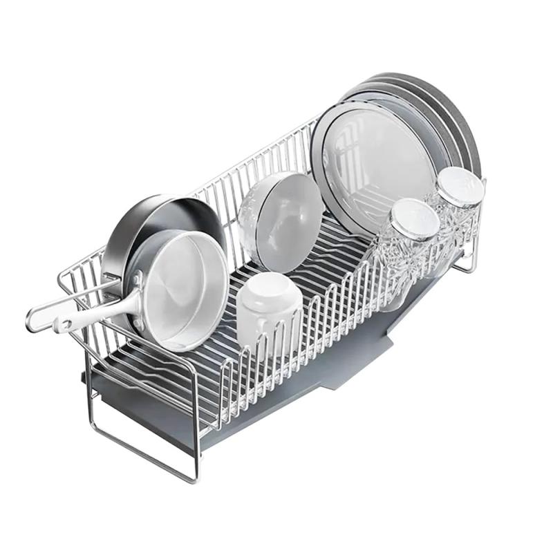 ANDWINT Vero 水切りラック ステンレス鋼 大容量 水切りかご 幅51*奥行21*高さ18cm スリム キッチン収納 食器乾燥 水切りバスケット 水切りトレー 皿立て 自動排水 完成品