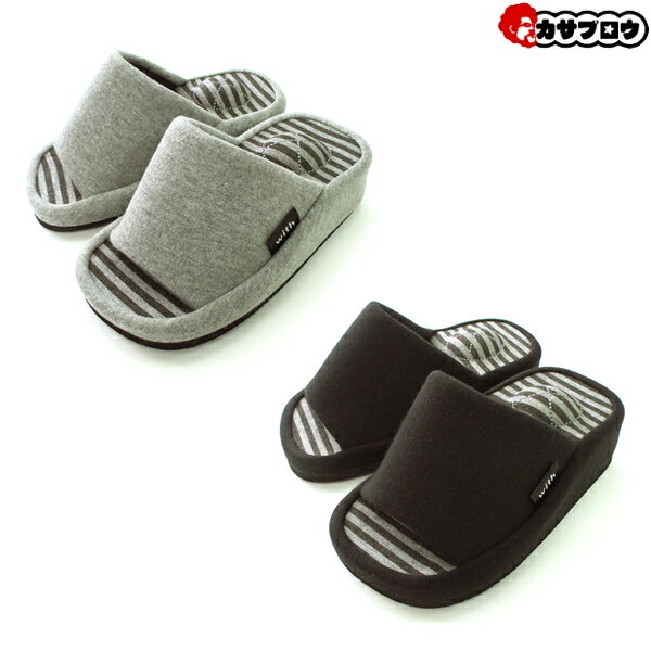 メンズ withウィズコンフォートスリッパ ニットボーダー ブラック グレー Lサイズシンプル モノトーン おしゃれ 男性用 紳士 ルームシューズ 幅広 フィット 厚底 安定感 室内履き 年間 前あき 春夏 秋冬 インテリア雑貨 ギフト包装無料