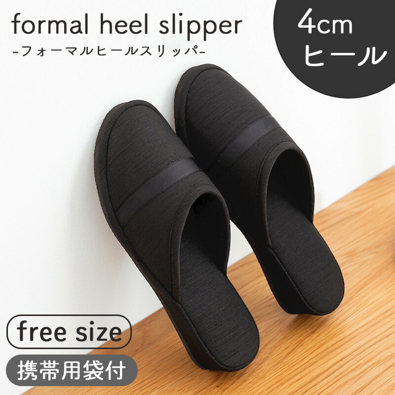 【期間限定200クーポン】ヒールスリッパ フォーマル シャンタン リボンスリッパ スリッパ リボン ヒール 学校行事 入学式 卒業式 保護者 学校 大人 授業参観 行事 お受験 レディース 女性 かわいい 可愛い おしゃれ 室内 オフィス 黒 ルームシューズ 携帯用 収納袋付 4cm