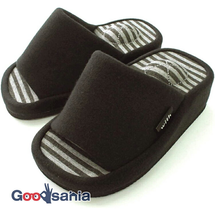 オクムラ スリッパ With ダイエット フリーサイズ ブラック NGAM9900BK ( つま先立ち 厚底 前開き ルームシューズ フリー レディース 女性 室内用 部屋用 家用 おしゃれ )