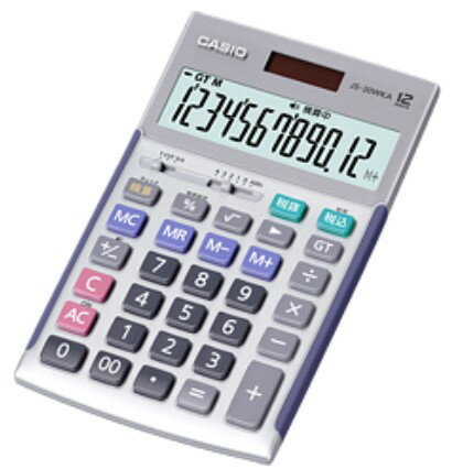 【送料無料(※東北・北海道・沖縄は別途追加あり)】 実務電卓ジャストタイプ JS-20WKA 4色! 検算タイプが3キーロールオーバー機能に進化!早打ちへの対応が向上しました。 一般企業での経理、財務、簿記や金融機関をはじめとするプロのニーズを徹底追及。 優れた早打ち対応設計、操作性、視認性など、ひとクラス上の性能が業務を強力にサポートします。 収納ケースはこちら。 【商品仕様】 ■サイズ (奥行×幅×高さ):174.5 × 107 × 24.2 mm ■質量 約210g ■特長 検算機能 、傾斜表示、大型ストッパー ■カラー シルバー、ゴールド、ピンク、ブラック ■小数点セレクター 4/3/2/1/0/ADD2 ■ラウンドセレクター 表示桁数内での小数表示/切り捨て/切り上げ/四捨五入 ■基本計算 四則計算、四則定数計算、概数計算マルチパーセント計算、平方根(ルート) ■税計算 税額計算や税率の変更可能 ■液晶ディスプレイ 計算状態表示/3桁位取り表示 ■早打ち機能 3キーロールオーバー/ツーゼロ(00) ■桁下げ バックスペース ■サインチェンジ 符号切替 ■桁数 12桁 ■キーの特徴 数字が消えない2色成型樹脂キー(一部キーを除く)凹凸キー タッチ音が静かなサイレントタッチキー ■メモリー メモリー数 2 ■総合計 グランドトータル計算 ■独立メモリー M+、M−、MR、MCキー方式 ■電源 T・W・P(ソーラー・電池の2電源)/ 電池 CR2025 × 1電池寿命 約7年(1日1時間使用時)オートパワーオフ 5年間のゴールド(製品)保証グリーン購入法適合商品エコマーク商品(06135002)