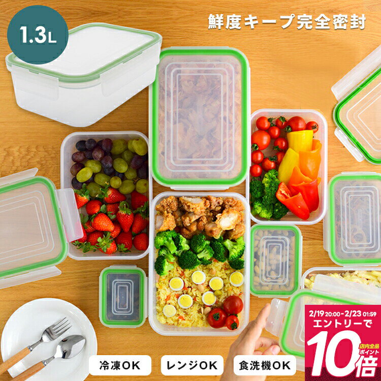 ・ 製品サイズ / 約 幅 21 x 奥行 14.6 x 高さ 7.3 cm・ 材質 / 本体 : ポリプロピレン フタ : ポリプロピレン、熱可塑性エラストマー・ 重量 / 約 211g・ 容量 / 約 1.3L・ 生産国 / 中国・ イオン抗菌効果で雑菌の繁殖を防ぎます。4点ロック方式で新鮮度を逃さず汁モレを防ぎます。洗いやすく汚れがたまりにくいパッキン一体型。お手入れ簡単で食品保存やレンジ加熱にも最適です。