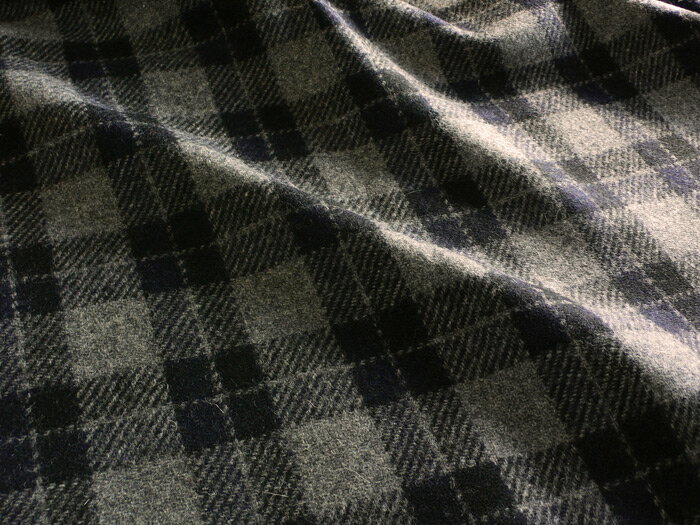 【生地・布地】【ウール混】広幅 起毛チェック グレー系