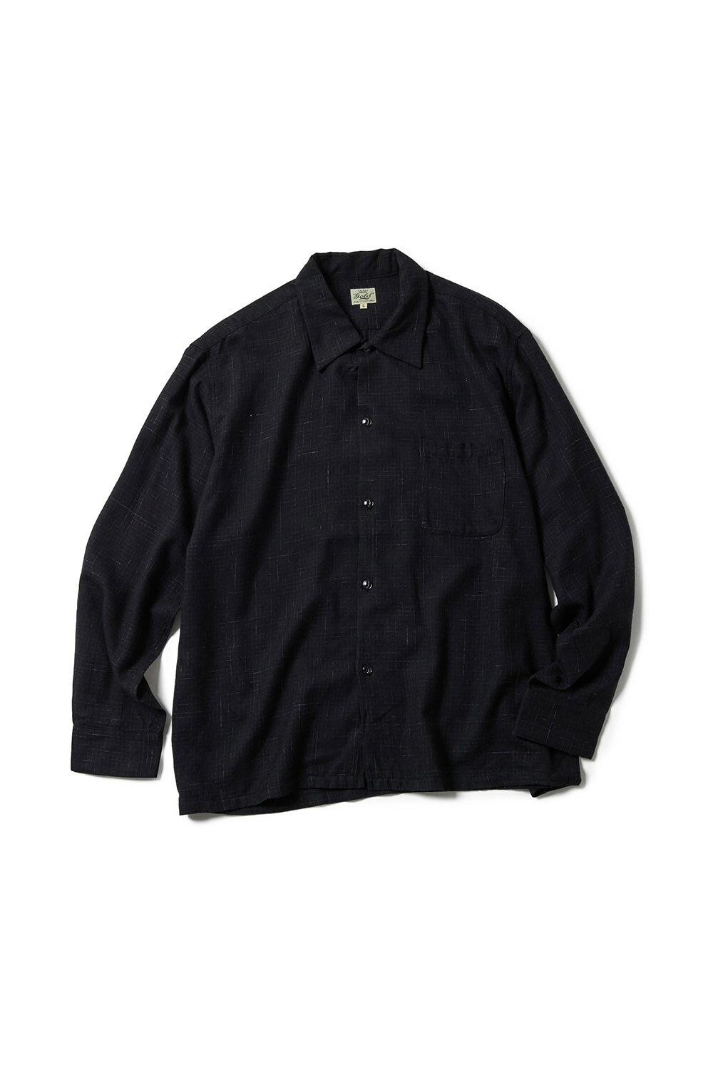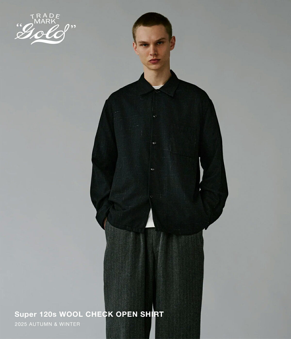 【P5倍】Super120's WOOL CHECK OPEN SHIRT - BLACK (GL29548) Gold(ゴールド)