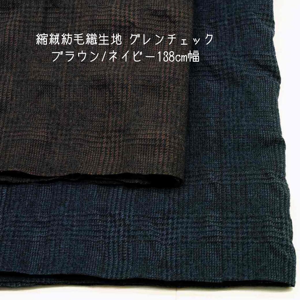 縮絨 紡毛 生地 グレンチェック ブラウン ネイビー 138cm幅 日本製 50cm単位の価格 ジャケット アウター レディス メンズ 子供服 手芸 クラフト 生地 布 屋さん