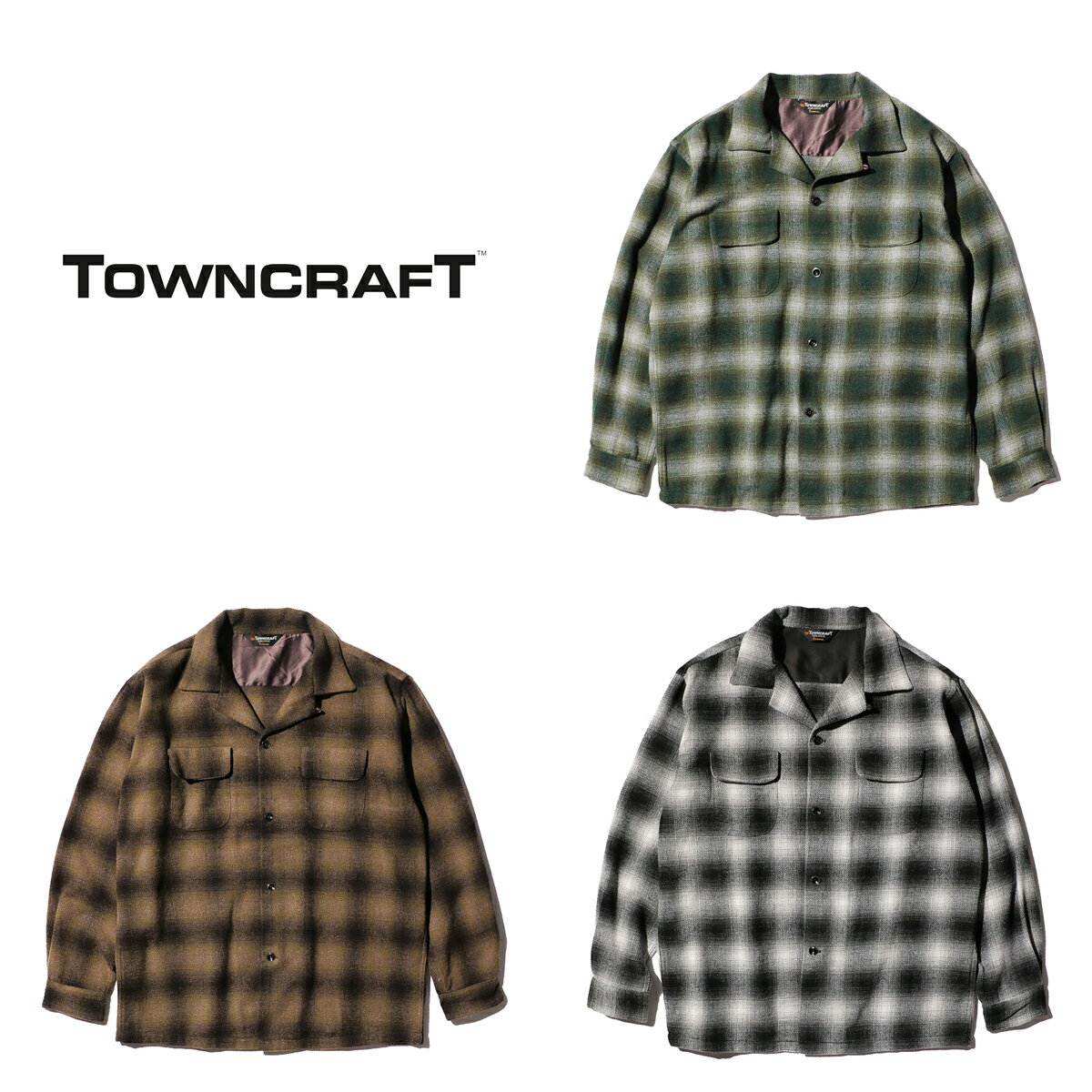 【TOWNCRAFT / タウンクラフト】WOOL CHECK LOOP COLLAR SHIRTS ボックスシルエット ウール オンブレ 長袖 チェックシャツ