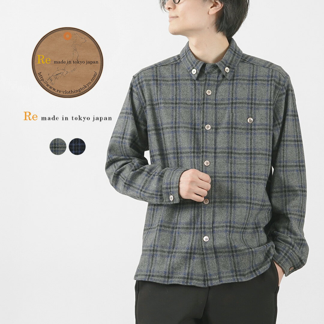 【10%OFFクーポン対象】RE MADE IN TOKYO JAPAN(アールイー) クラフトウール チェック CPO ボタンダウンシャツ / メンズ トップス 長袖 日本製 Craft Wool Check CPO BD Shirt
