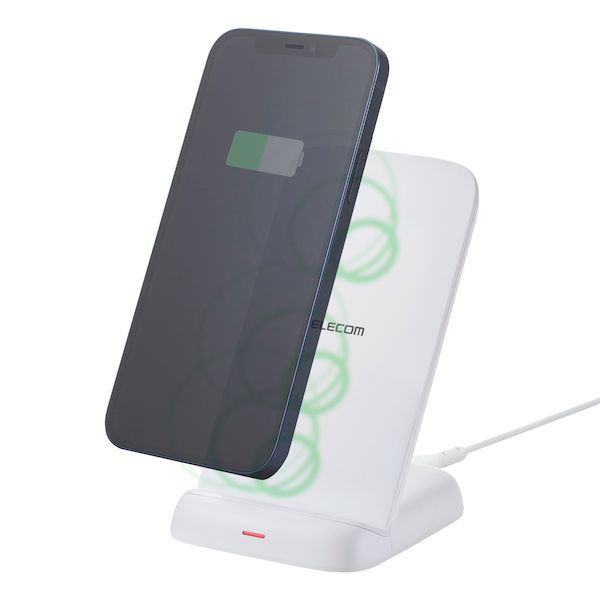 ■縦でも横でも、AirPodsも。対応するスマートフォンや他のQi対応機器を置くだけで充電ができる、Qi規格対応ワイヤレス充電器です。 最大出力12Wで、幅広い機種で高速充電が可能。 3枚のコイルを搭載し、スマートフォンを縦置き・横置き両方で充電でき、対応するAirPodsにも使えます。[特徴]■スマートフォンや他のQi対応機器を置くだけで充電ができる、Qi規格対応ワイヤレス充電器です。 ■WPC(ワイヤレスパワーコンソーシアム)が策定したワイヤレス給電の国際標準規格「Qi(チー)」に準拠した正規認証品です。 ■※エレコムはWPCの会員企業です。 ■3枚のコイルを搭載し、広い面でワイヤレス充電が可能。スマートフォンを縦置き・横置きしても充電でき、AirPodsなどその他のワイヤレス充電対応機器にも使えます。 ■ワイヤレス充電に対応したPixel・Xperia・GalaxyなどのAndroidスマートフォンおよびiPhoneを充電できます。 ■最大出力12Wで、対応するPixel・Xperia・Galaxyの急速充電10W〜12W規格、iPhoneの7.5W規格、標準の5W規格に対応しています。 ■台座部に重りを内蔵しているので、安定してスマートフォンを置くことができます。 ■機器を載せる面に滑り止めパッドを配置し、スマートフォン本体への傷やバイブレーションによる滑り落ちを防いでいます。 ■充電状況が確認できる動作確認LEDが付いています。 ■ケースをつけたまま充電することも可能です。 ■※3mm以下の厚さのケースのみ。3mm以下のケースであっても、その仕様や条件によっては充電できない場合があります。 ■※金属、磁石等を含むスマホリング、ケースなどはご利用いただけません。発熱の危険性があるため、取り外してご利用ください。 ■ゆったりと接続できる長さ約1mのケーブルが付属しています。ケーブルは着脱可能です。 ■※本製品にはUSB出力アダプター(AC充電器など)は付属しておりません。本製品をご利用いただくには出力5V/2A以上のUSB出力アダプターを別途ご用意ください。 ■※12Wワイヤレス充電をご利用いただくには、USB Power Delivery 20W以上に対応したUSB出力アダプターを、別途ご用意ください。 ■※USB-Aポート搭載のAC充電器をご利用の際は、USB-A - USB Type-Cケーブルを別途ご用意ください。 ■※充電対応機種はエレコムホームページの対応表をご確認ください。 ■※USB Type-C and USB-C are trademarks of USB Implementers Forum. ■自社環境認定基準を1つ以上満たし、『THINK ECOLOGY』マークを表示した製品です。 ■廃棄物削減に取り組み、製品に同梱する取扱説明書などをペーパーレス化した製品です。 ■環境保全に取り組み、製品の包装容器におけるプラスチック重量を、社内基準製品より20%以上削減した製品です。 ■環境保全に取り組み、製品本体の主たる構成部品や構成要素の原料に占めるリサイクル原料の割合が10%を超えている製品です。≪商品の概要≫■対応機種:Qiの5W(BPP)規格、Appleの7.5W規格、Samsungの10W規格,12W(EPP)規格のワイヤレス充電に対応した機器 ■入力:最大5V/2Aまたは9V/2Aまたは12V/1.5A(USB Power Delivery対応) ■出力:5W/7.5W/10W/12W ■入力端子:USB Type-C(TM)ポート ■外形寸法:幅約74mm×奥行約88mm×高さ約115mm ■重量:約184g ■使用温度範囲:0℃〜40℃ ■使用湿度範囲:20%〜80% ■認証規格:Qi (EPP) ■LED発光色:通電:青3秒点灯/待機:消灯/充電中:赤点灯/充電完了:青点灯/エラー時:赤青点滅※ 機種によっては充電完了時にLEDの色が変化しない場合があります。 ■カラー:ホワイト ■ケーブル仕様:USB Type-C - USB Type-Cケーブル ■ケーブル長:約1m ■ケーブル色:ホワイト ■付属品:ケーブル ■保証期間:1年間 ■保証対象地域:日本■返品について お客様のご都合による返品・交換をご希望の場合は、商品到着後一週間以内にご連絡ください。 未開封・未使用品に限り、返品をお受けします。(※返品不可としている商品を除く) (※商品の初期不良による返品及び返金はお受けできません。) ※返品の際に発生する送料はお客様のご負担になります。 ※返品の場合の返金につきましては送料の返金は出来ません。 ※商品の初期不良による返品・別の商品への交換及び返金はいかなる場合においてもお受けできません。 (初期不良の場合は、検査済みの同新品商品をお届けします) ■送料無料商品のお客様都合によるご返品について 送料無料としている商品でもお客様都合によるご返品の場合は、ご注文商品発送の際に弊社が負担した送料(梱包・事務手数料含め)は差し引いてのご返金となります。予めご了承の上ご検討お願いします。 ■万一、お届けした商品に不具合があった場合は 商品到着後1週間以内にご連絡下さい。 迅速に検査済みの商品を発送させていただきます。 ※商品の初期不良による返品・別の商品への交換及び返金はいかなる場合においてもお受けできません。 (初期不良の場合は、検査済みの同新品商品をお届けします) 【責任の制限】 当店では、商品の品質・安全等について万全を期しておりますが、万が一商品不具合または商品の使用及びお届けの遅延等によ