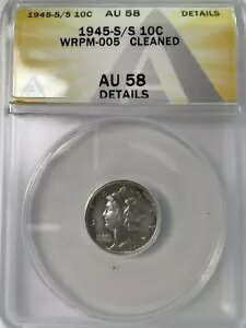 ANACS AU58 詳細 1945 S/S WRPM#5 ノーマルS/反転S ミントマーク マーキュリーダイム