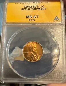 1942-D/D リンカーン・セント RPM 6 MS67RED ANACS! タフコイン*** WRPM 007***