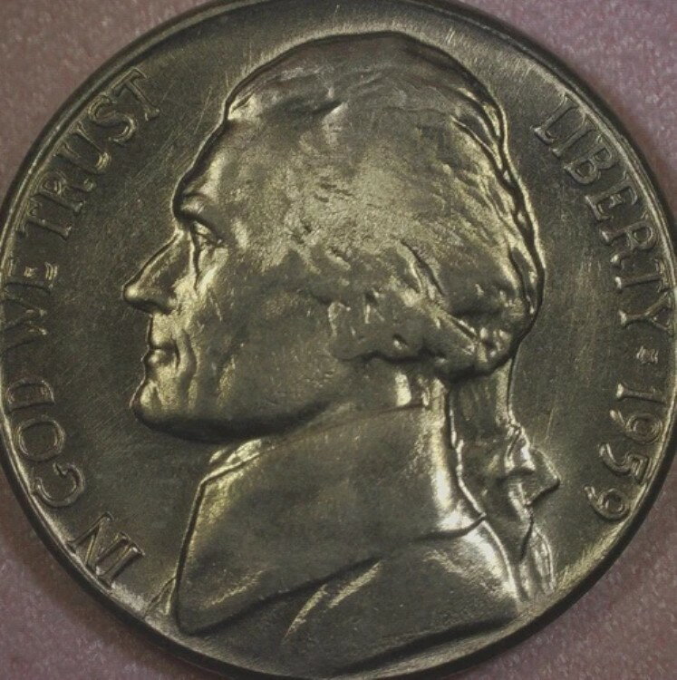 1959 d/d Jefferson Nickel / BU / WRPM-005 ?? クローズアップ付き。希少な回転盤!