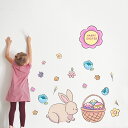 3sizeから選べる!イースター☆シール式ウォールステッカー 190×427mm 390×877mm 590×1327mm Ssize Msize Lsize wsn-034155-ws うさぎ かご