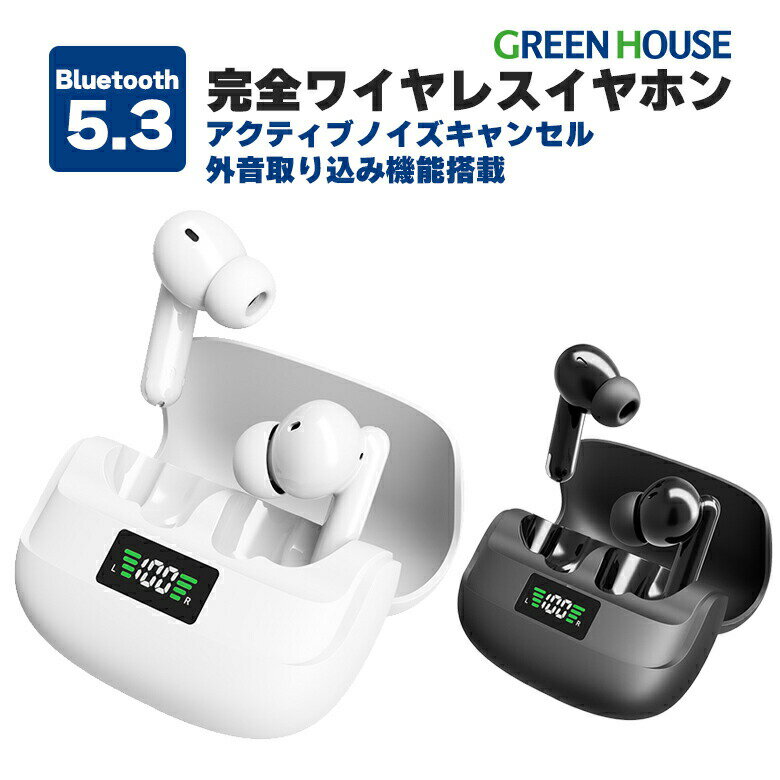 ワイヤレスイヤホン アクティブノイズキャンセル GH-TWSW Bluetooth 5.3 IPx5防水 ワイヤレスイヤフォン イヤホン 防水 スポーツ ランニング マイク内蔵 ブルートゥース iPhone Android PR01 グリーンハウス