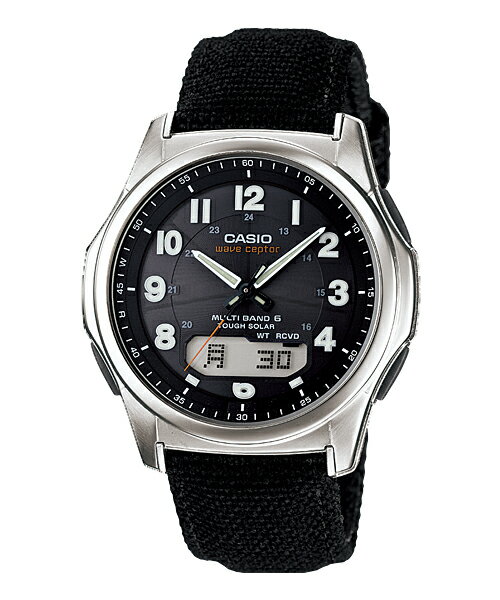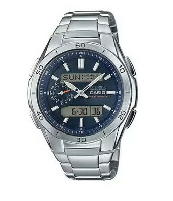 □「返品種別」について詳しくはこちら□「おひとり様1点まで」2015年08月 発売メーカー保証期間 1年【 wave ceptor 】日本・中国・アメリカ・ヨーロッパの標準電波に対応したマルチバンド6のソーラー電波時計です。ワールドタイムや時刻アラーム、カレンダーなどをわかりやすく上下の液晶に表示。また、9時位置の小針が現在どのモードにいるのかを示してくれるので、操作をアシストします。・世界6局(日本2局、中国、アメリカ、イギリス、ドイツ)の標準電波を受信し、時刻を自動修正するマルチバンド6を搭載●タフソーラー(ソーラー充電システム)●10気圧防水機能●電波受信機能 自動受信(最大6回/日)(中国電波は最大5回/日)/手動受信 【日本】受信電波:JJY、周波数:40kHz/60kHz(福島・九州両局対応モデル) 【北米地域】受信電波:WWVB、周波数:60kHz 【ヨーロッパ地域】受信電波:MSF/DCF77、周波数:60kHz/77.5kHz 【中国】受信電波:BPC、周波数:68.5kHz ※ホームタイム設定を受信可能な都市に設定すると、都市にあわせた局を受信します。 尚、時差は選択した都市によって設定されます。●ワールドタイム 世界48都市(29タイムゾーン、サマータイム設定機能付き)+UTC(協定世界時)の時刻表示、ホームタイムの都市入替機能●ストップウオッチ機能 1/100秒、24時間計、スプリット付き●タイマー セット単位:1分、最大セット:60分、1秒単位で計測、オートリピート(8回)●時刻アラーム 5本(1本のみスヌーズ機能付き)・時報●バッテリーインジケーター表示●パワーセービング機能 暗所では一定時間が経過すると表示を消し節電します。●フルオートカレンダー●12/24時間制表示切替●ネオブライト 短時間で光を吸収し、長時間暗闇で光続ける夜光塗料を使用しています。●球面・曲面ガラス 時計のガラスやアクリル面が球面・曲面に仕上げられています。●LEDライト フルオートライト、残照機能付き●フル充電時からソーラー発電無しの状態での駆動時間: 機能使用の場合:約6ヶ月 パワーセービング状態の場合:約20ヶ月■カラー:文字板/バンド・ブラック系、ケース・シルバー系■精 度:平均月差 ±15秒(非受信時)■ケース/ベゼル材質:樹脂/ステンレス■ガラス:樹脂ガラス■バンド:樹脂■サイズ:48.8×43.5mm■厚 さ:14.5mm■重 さ:47g■腕周り:145〜215mm時計>国内ブランド腕時計 メンズ>CASIO(カシオ)>wave ceptor(ウェーブセプター)