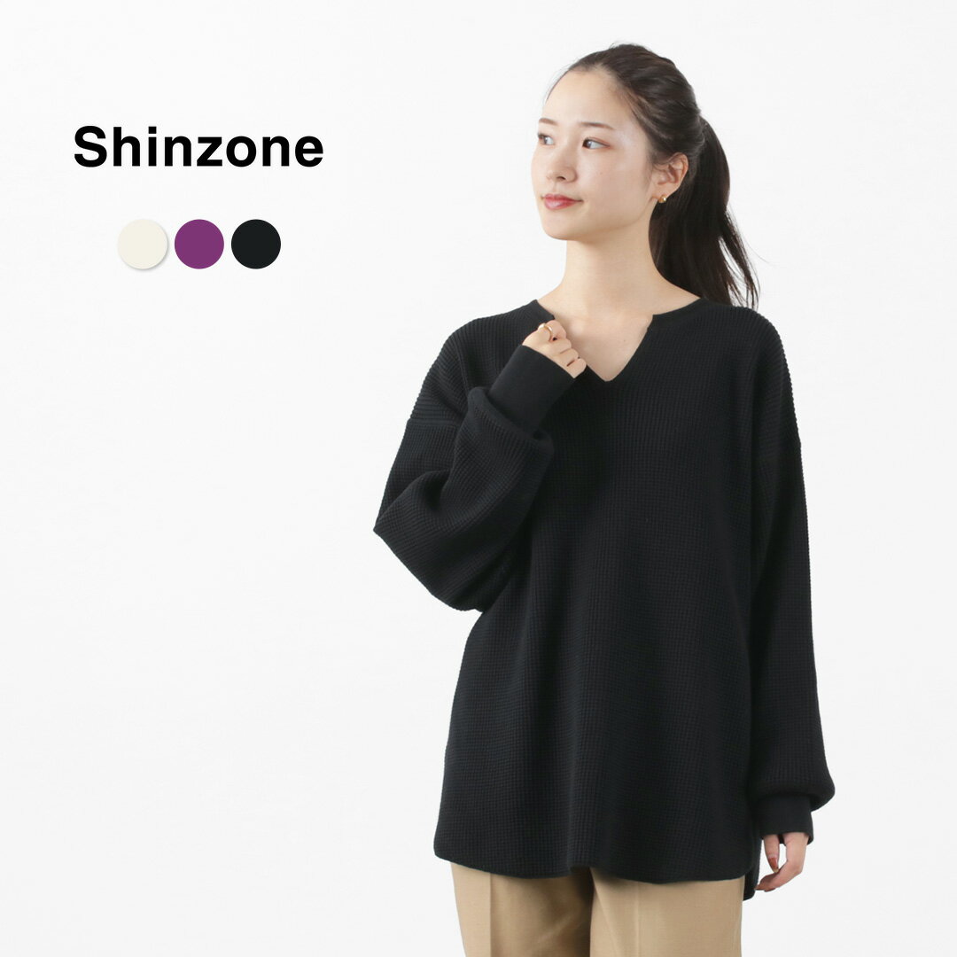 【10%OFFクーポン対象】SHINZONE(シンゾーン) コットンカシミア ワッフルニット プルオーバー 22MMSNI07 / レディース 長袖 無地 スウェット おしゃれ シンプル Vネック キーネック CO/CA WAFFLE KNIT PO