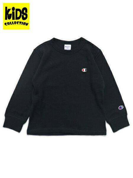 【KIDS】CHAMPION KIDS US COTTON WAFFLE L/S TEE【CK-Y405-090-BLACK】