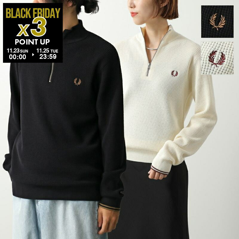 FRED PERRY フレッドペリー セーター WAFFLE STITCH HALF ZIP JUMPER K8557 メンズ レディース コットン ニット ワッフル ハーフジップ ローレルリース 刺繍 カラー2色