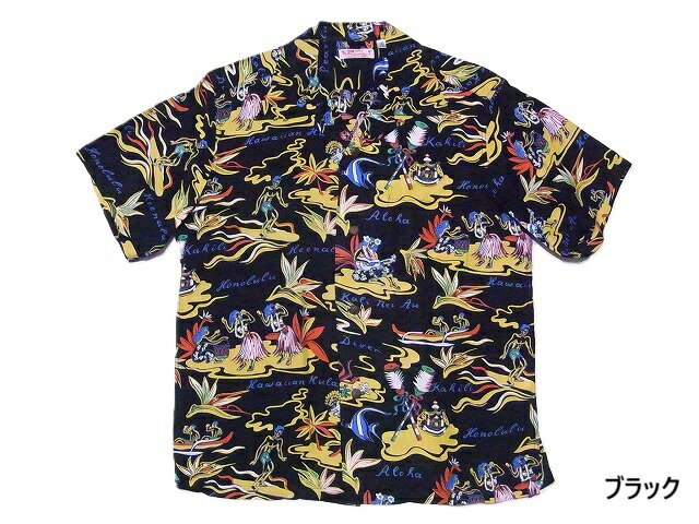 サンサーフ SUN SURF アロハシャツ ハワイアンシャツ HAWAIIAN S/S SHIRT “HAWAIIAN HULA” 半袖 レーヨン ブラック 黒 BLACK SS39411