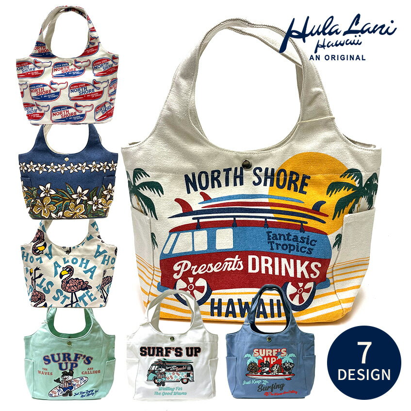 \スーパーセール/フララニハワイ 帆布 トートバッグ Hula Lani Hawaii サーフアップ Surf up レディースバッグ ハワイアン キャンバス サーフ ボタニカル プルメリア ハイビスカス ネイビー ベージュ 犬