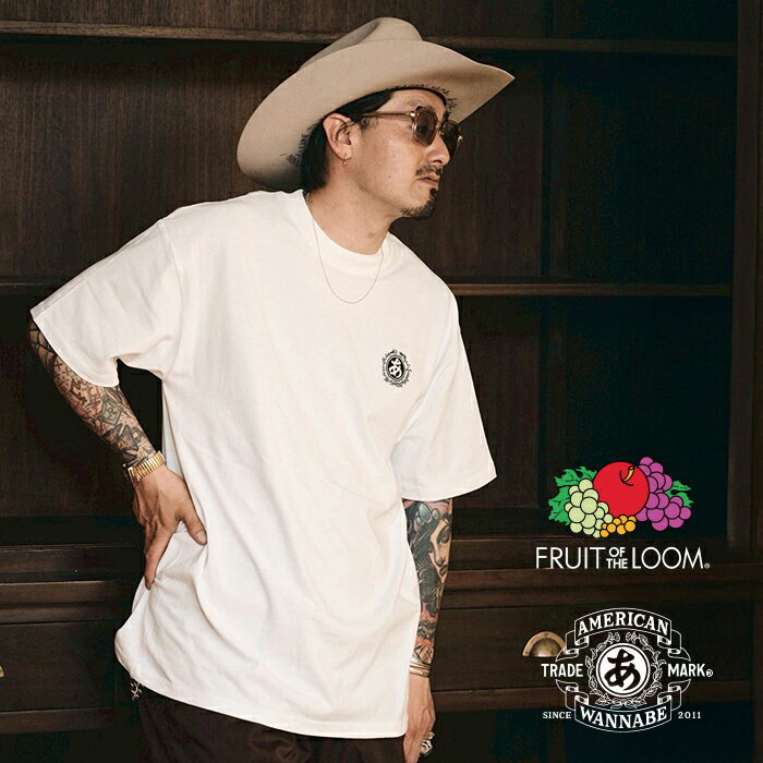 FRUIT OF THE LOOM × AMERICAN WANNABE /「TRADE MARK EMBROIDERY S/S TEE / WHITE×BLACK」S/S Tシャツ / MEN'S メンズ / フルーツオブザルーム / アメリカンワナビー / Tシャツ / 半袖 / シンプル / 無地 / 刺繍 / ストリート / カジュアル / アメカジ / 限定