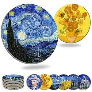 WOW DING Coasters for Drinks Ceramic Van Gogh Art Coasters Set - Use 6 Famous Van Gogh tings, Unique Housewarming Gifts for New Home Decorative by WOWDING