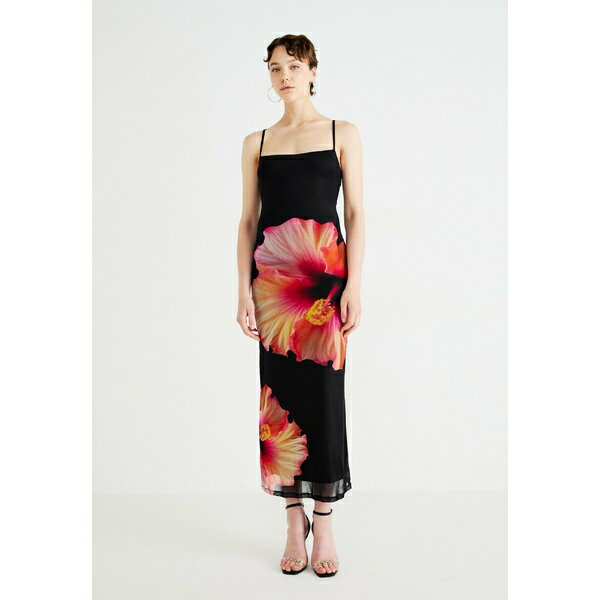 エイソス レディース トップス ワンピース マキシワンピース フリル マキシ ASOS DESIGN plisse cami maxi dress with waterfall corsage ruffle Black ブラック